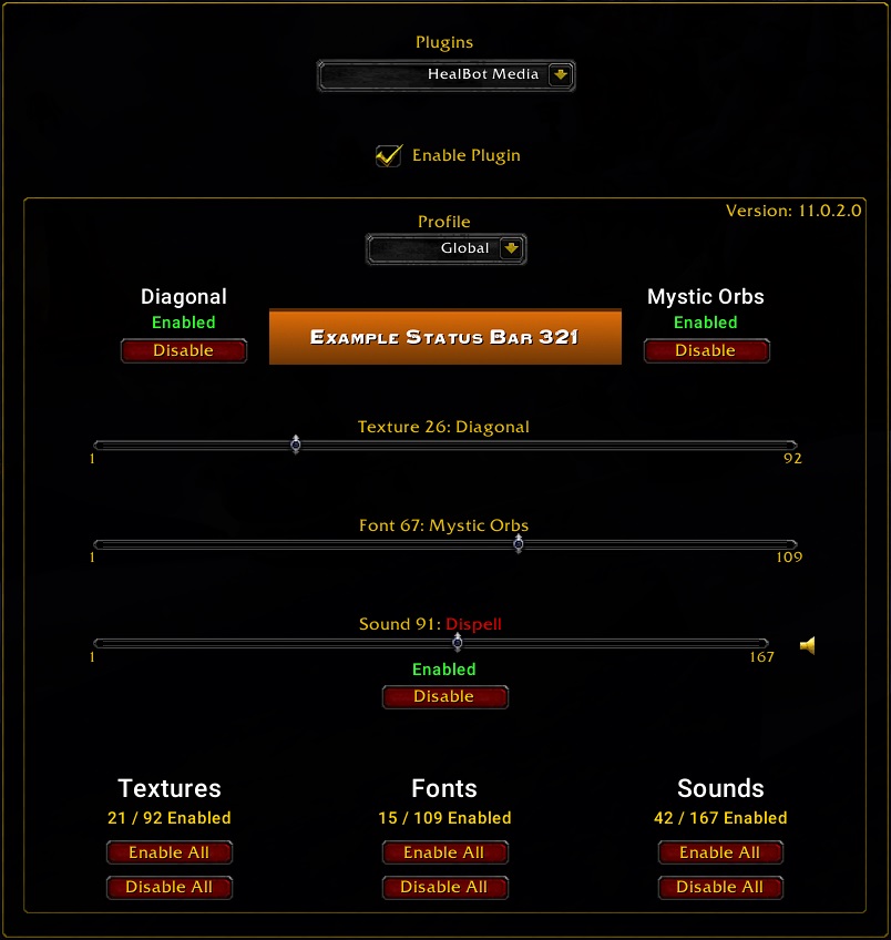 Excluding media can make changes to HealBot easier. For example, when creating or changing skins, using only the media you want, will make setup faster.